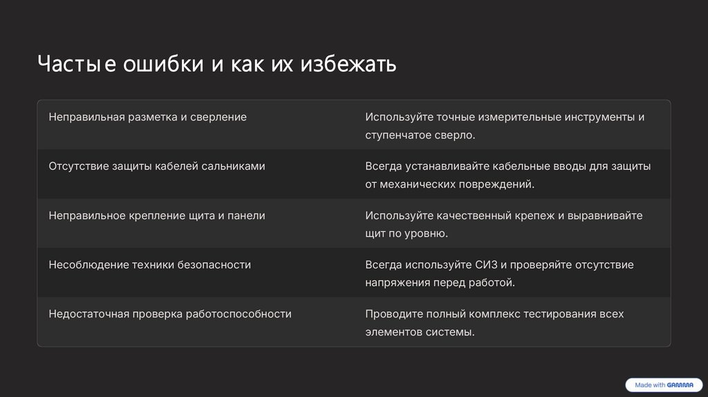 Часты е ошибки и как их избежатьНеправильная разметка и сверление