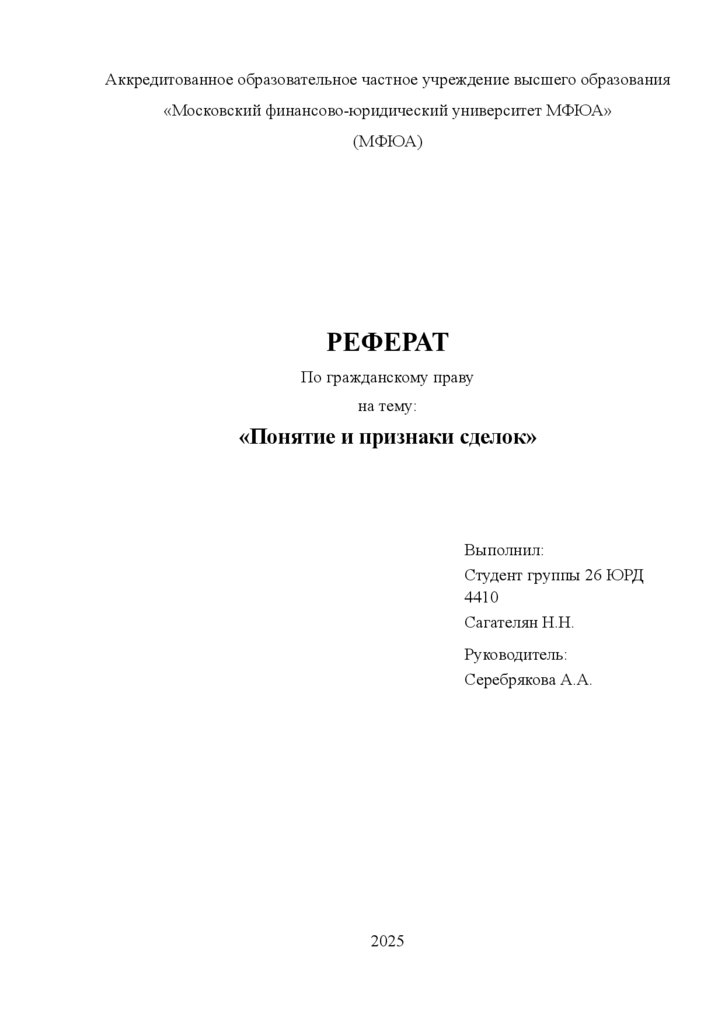1. Понятие и признаки сделки…………………………………………..4-6 стр.