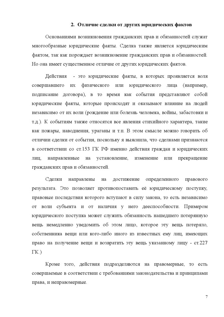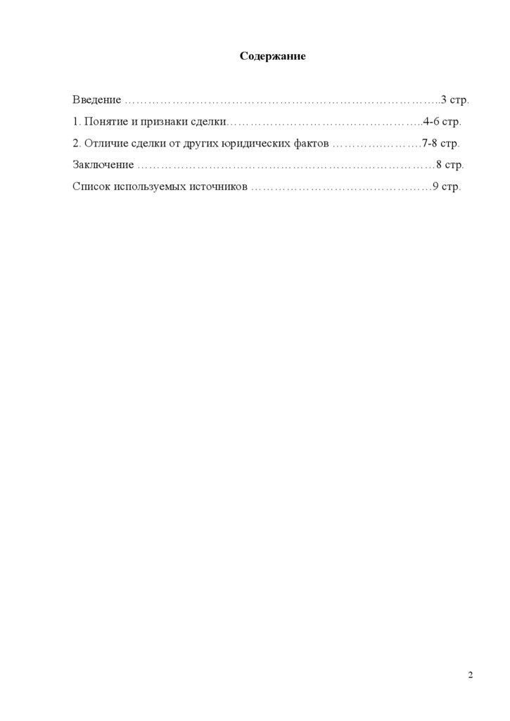 2. Отличие сделки от других юридических фактов ………….……….7-8 стр.