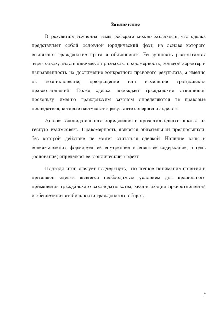 ЗаключениеВ результате изучения темы реферата можно заключить, что сделка