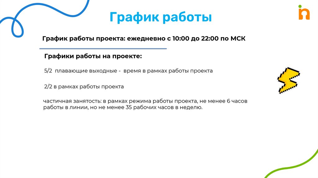 работы в линии, но не менее 35 рабочих часов в неделю.