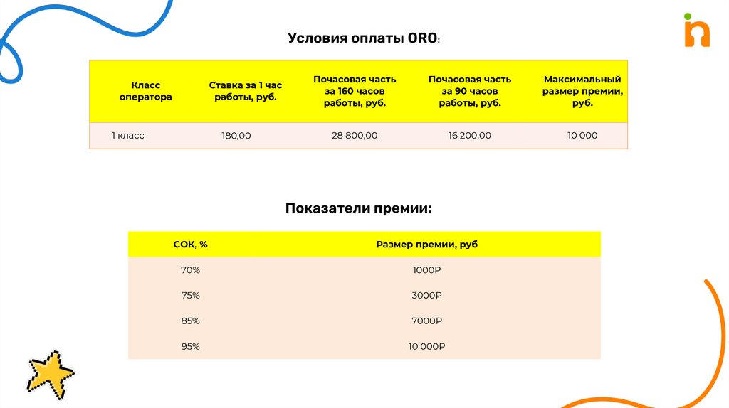 Условия оплаты ОRО:Класс