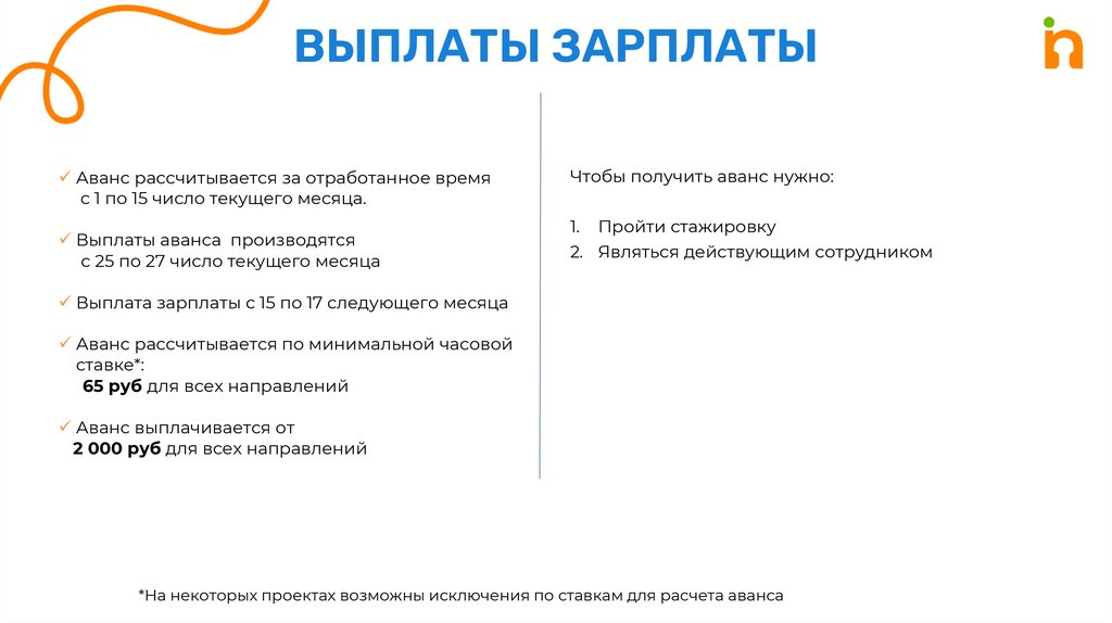 ВЫПЛАТЫ ЗАРПЛАТЫАванс рассчитывается за отработанное время