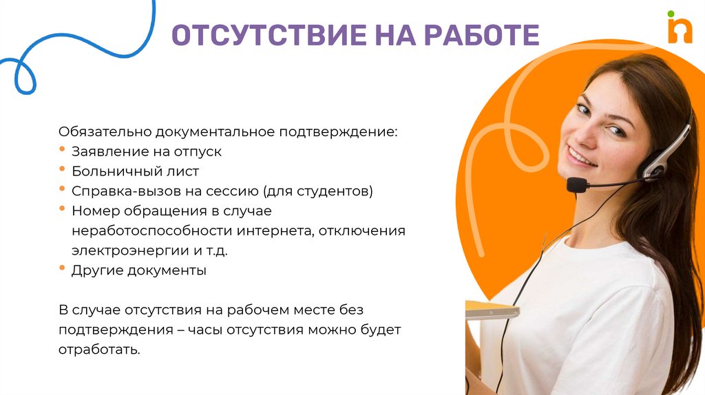 ОТСУТСТВИЕ НА РАБОТЕОбязательно документальное подтверждение: