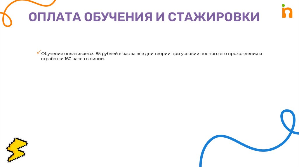ОПЛАТА ОБУЧЕНИЯ И СТАЖИРОВКИОбучение оплачивается 85 рублей в час за все дни теории при условии полного его прохождения и