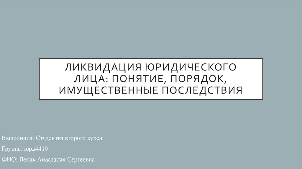 1. Ликвидация юридического лица: понятие, порядок, имущественные последствия