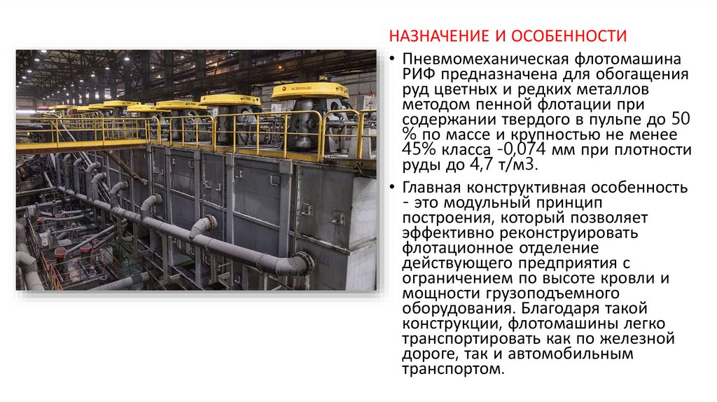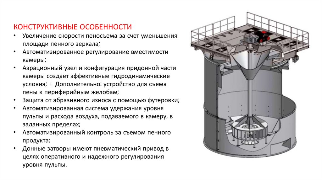 НАЗНАЧЕНИЕ И ОСОБЕННОСТИ• Пневмомеханическая флотомашина