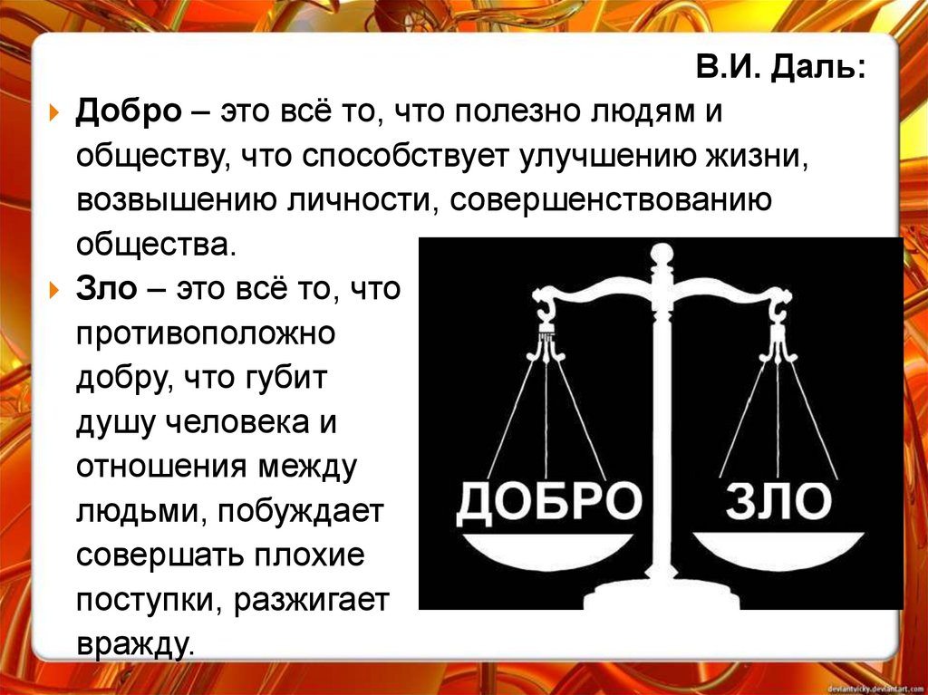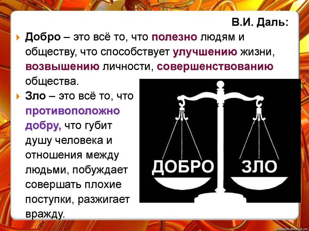 В.И. Даль:Добро – это всё то, что полезно людям и