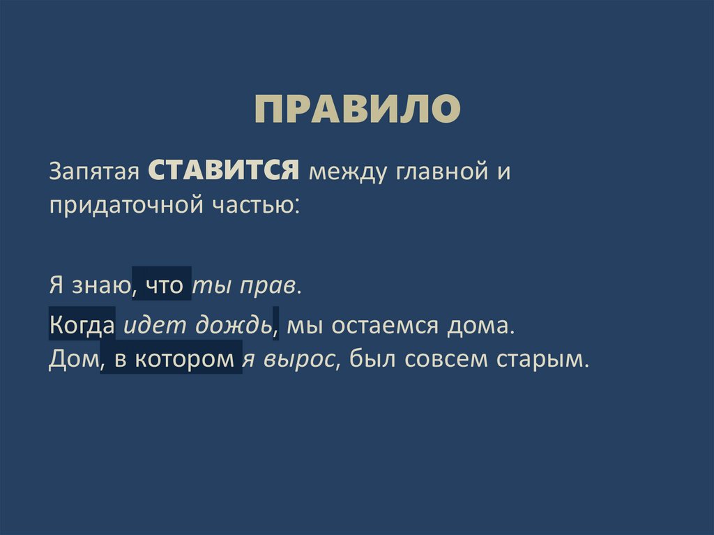 ПРАВИЛОЗапятая СТАВИТСЯ между главной и