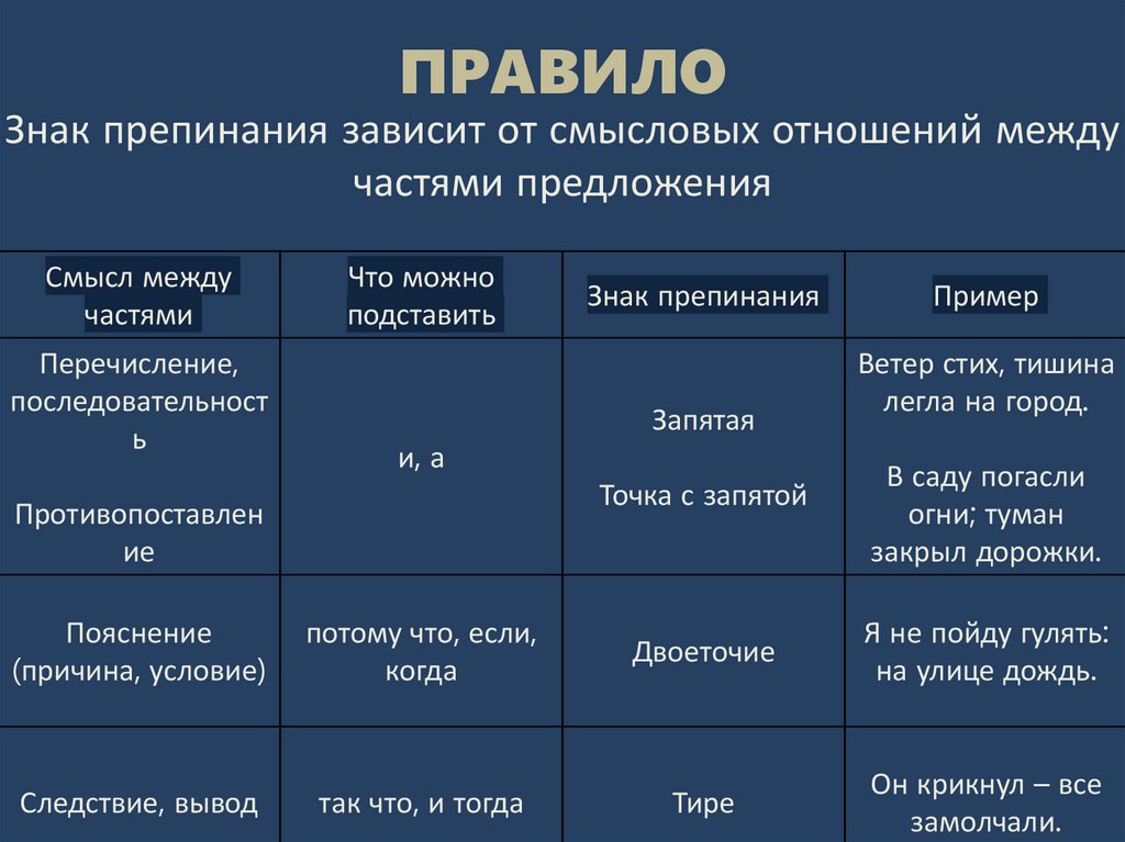 ПРАВИЛОЗнак препинания зависит от смысловых отношений между