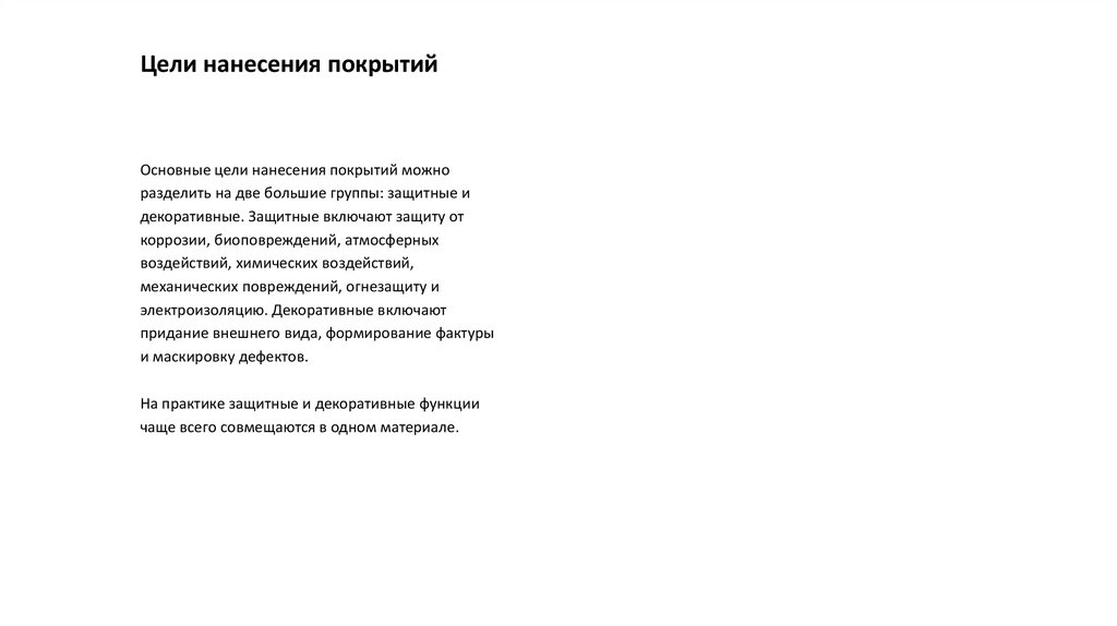 Цели нанесения покрытийОсновные цели нанесения покрытий можно