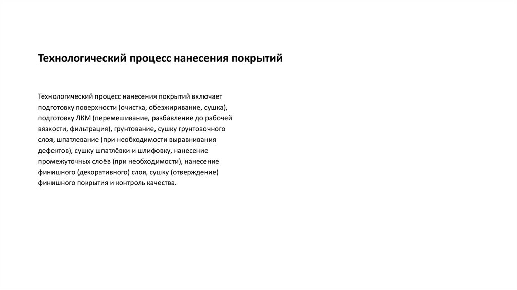 Технологический процесс нанесения покрытийТехнологический процесс нанесения покрытий включает