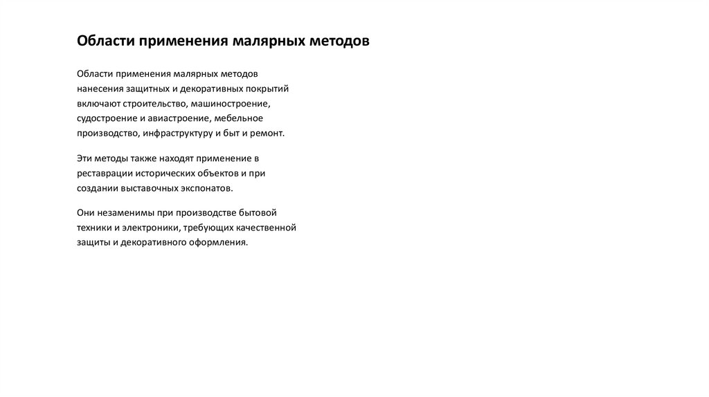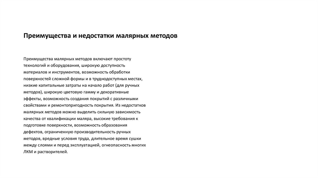 Преимущества и недостатки малярных методовПреимущества малярных методов включают простоту