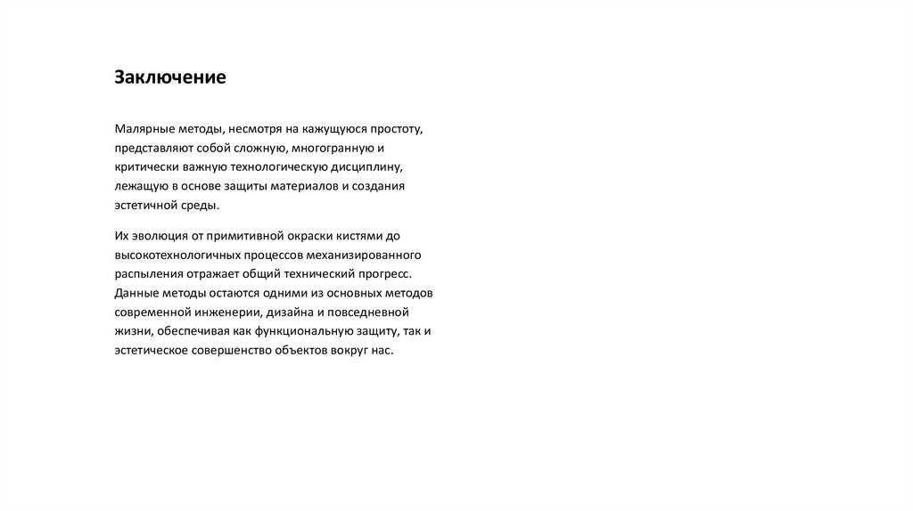 ЗаключениеМалярные методы, несмотря на кажущуюся простоту,