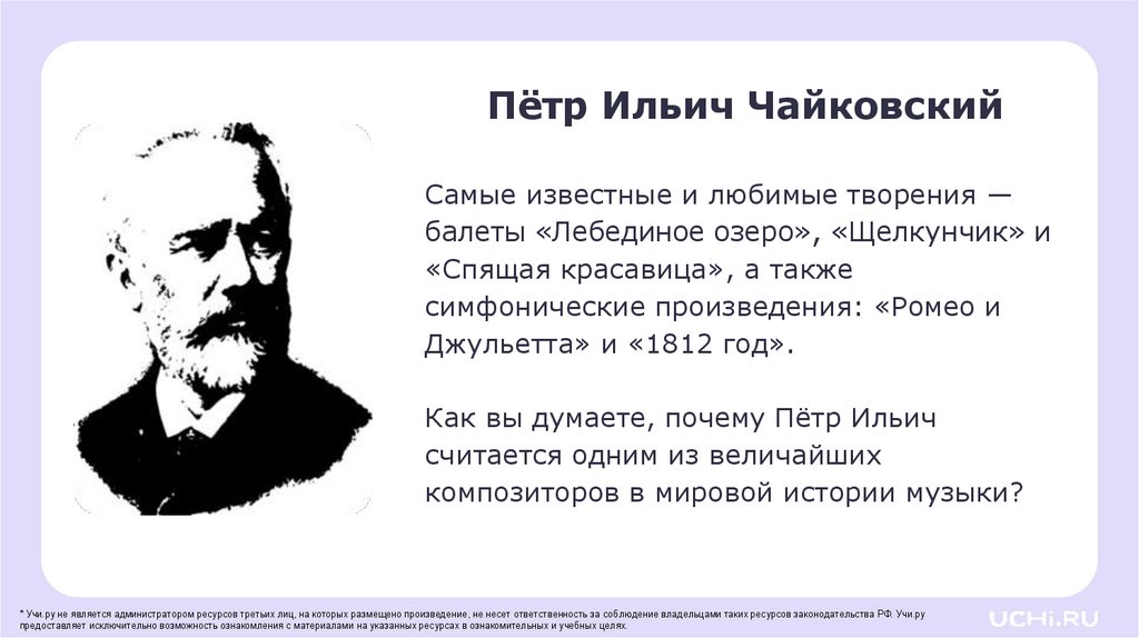 Пётр Ильич ЧайковскийСамые известные и любимые творения —