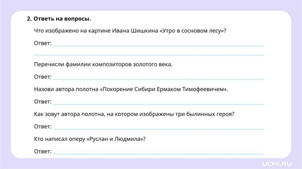 * Учи.ру не является администратором ресурсов третьих лиц, на которых размещено произведение, не несет ответственность за соблюдение владельцами таких ресурсов законодательства РФ. Учи.ру