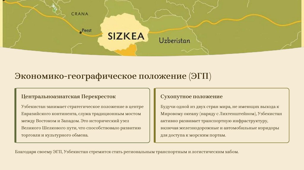 Экономико-географическое положение (ЭГП)Центральноазиатская Перекресток