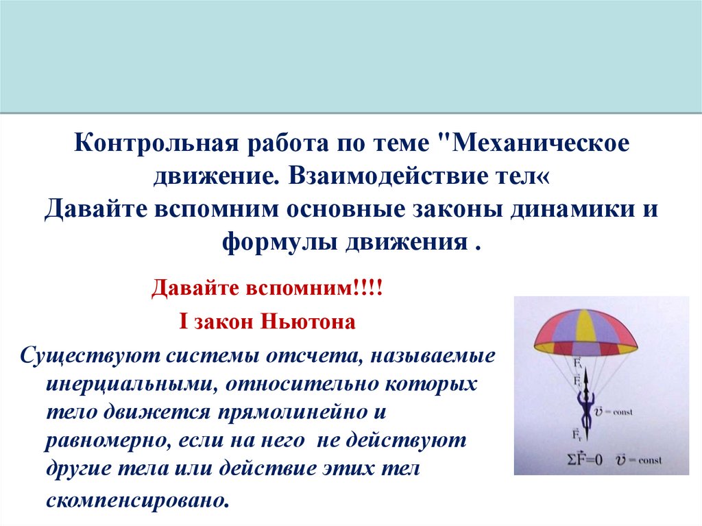 1. Контрольная работа по теме "Механическое движение. Взаимодействие тел« Давайте вспомним основные законы динамики и формулы