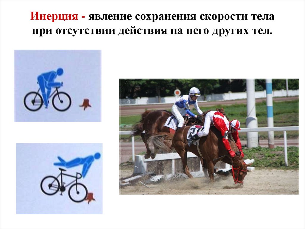 Инерция - явление сохранения скорости телапри отсутствии действия на него других тел.