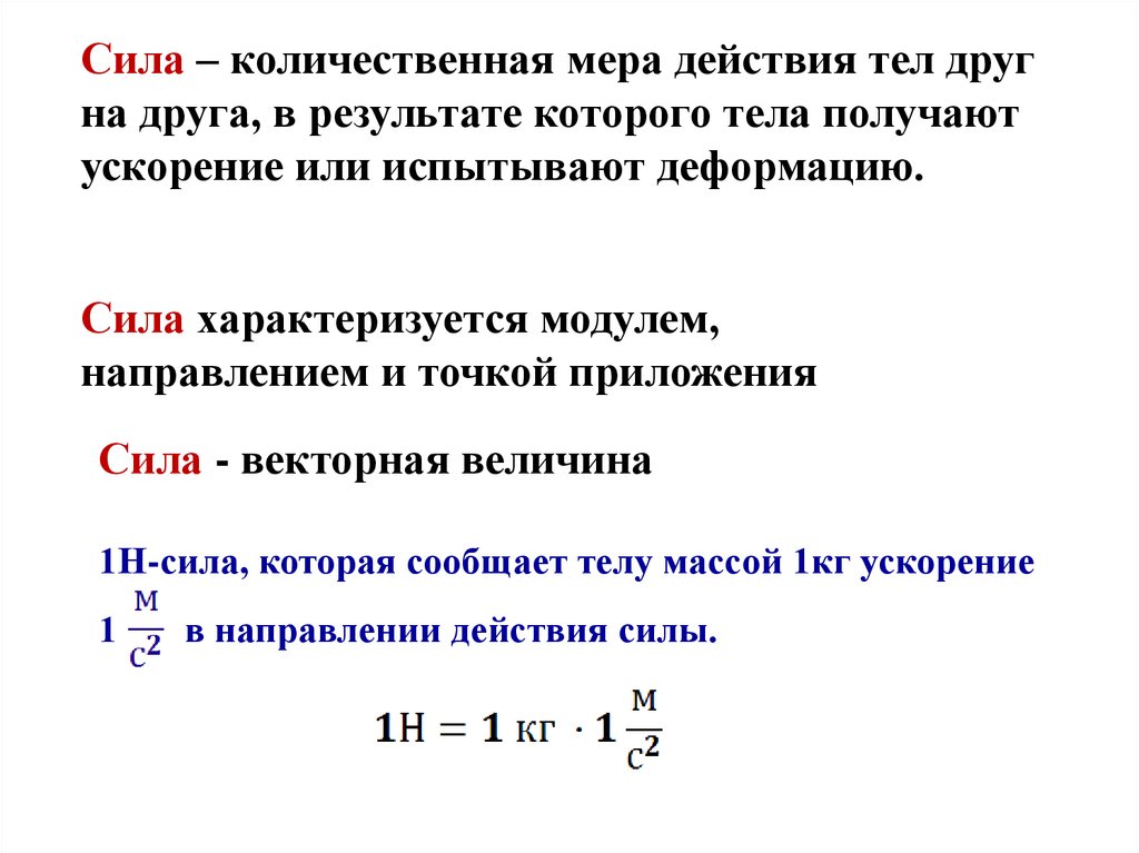 Сила – количественная мера действия тел другна друга, в результате которого тела получают