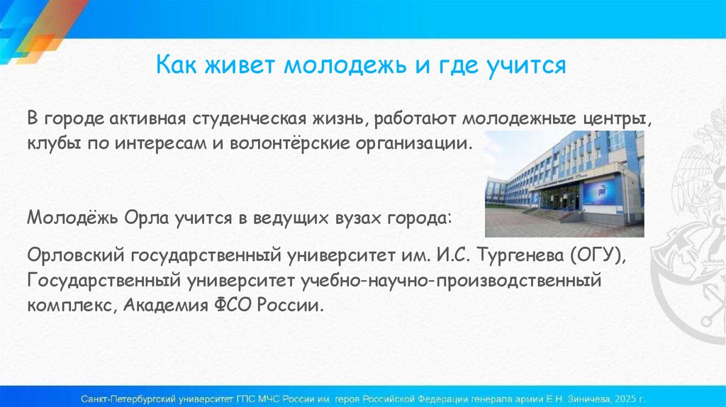Молодёжь Орла учится в ведущих вузах города: