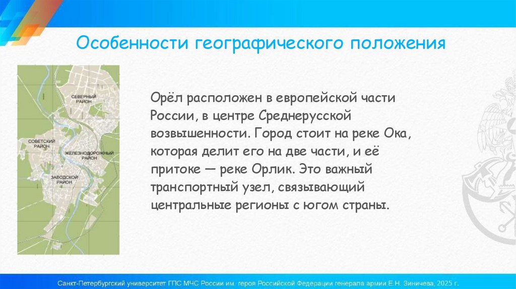Особенности географического положенияОрёл расположен в европейской части