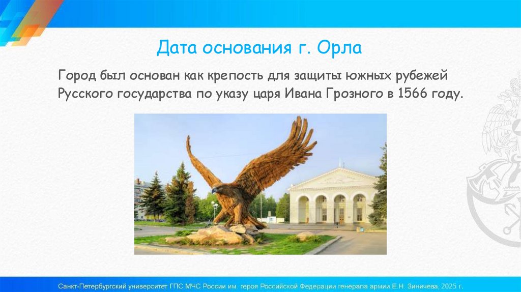 Дата основания г. ОрлаГород был основан как крепость для защиты южных рубежей