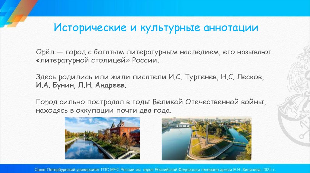Исторические и культурные аннотацииОрёл — город с богатым литературным наследием, его называют