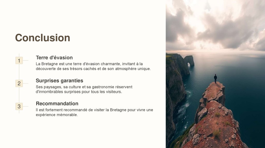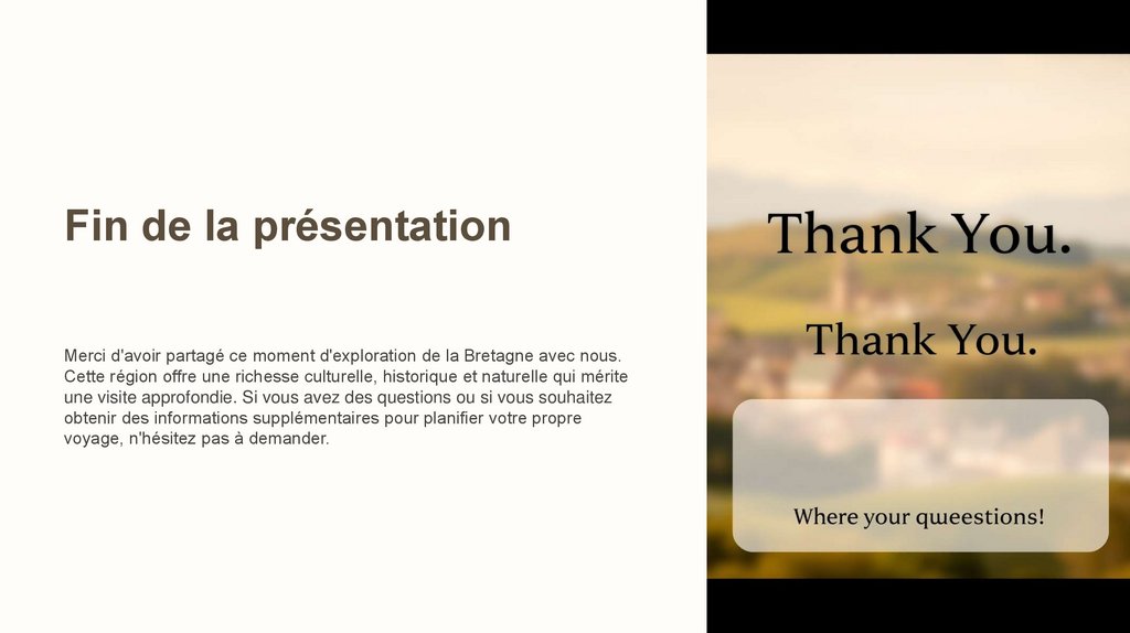 Fin de la présentationMerci d'avoir partagé ce moment d'exploration de la Bretagne avec nous.