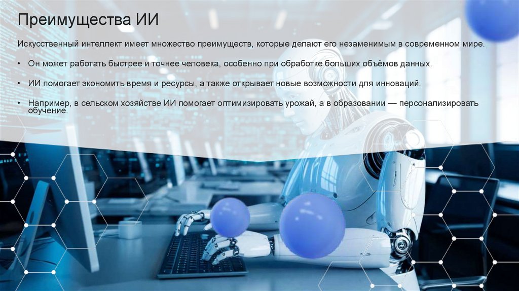 Преимущества ИИИскусственный интеллект имеет множество преимуществ, которые делают его незаменимым в современном мире.