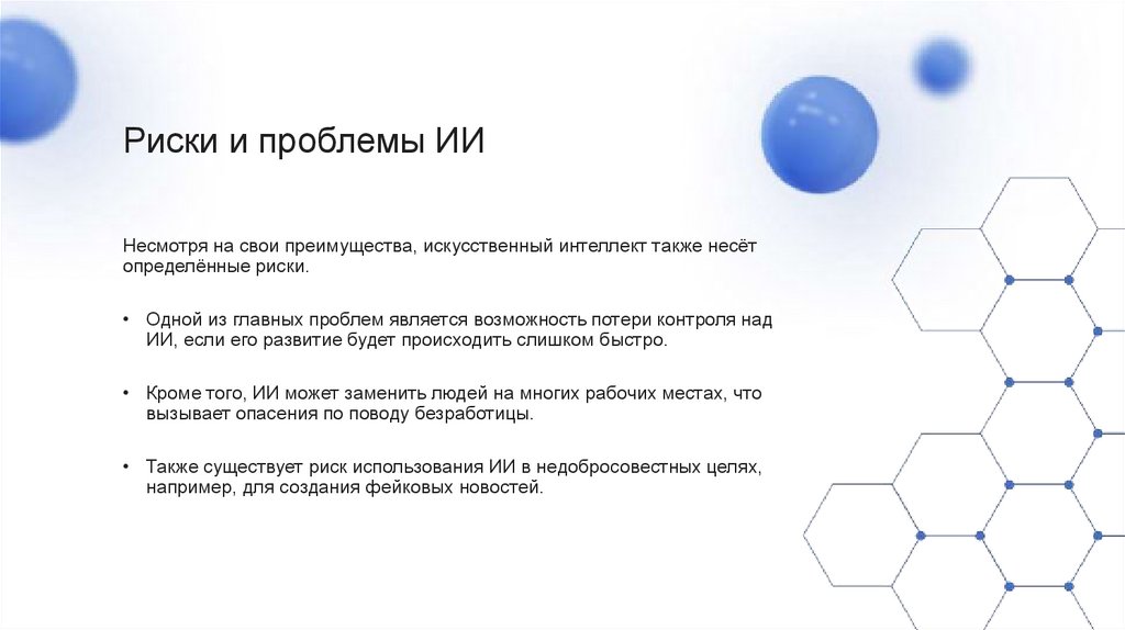 Риски и проблемы ИИНесмотря на свои преимущества, искусственный интеллект также несёт