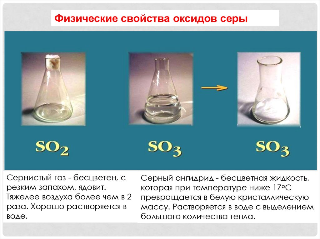 Физические свойства оксидов серыСернистый газ - бесцветен, с