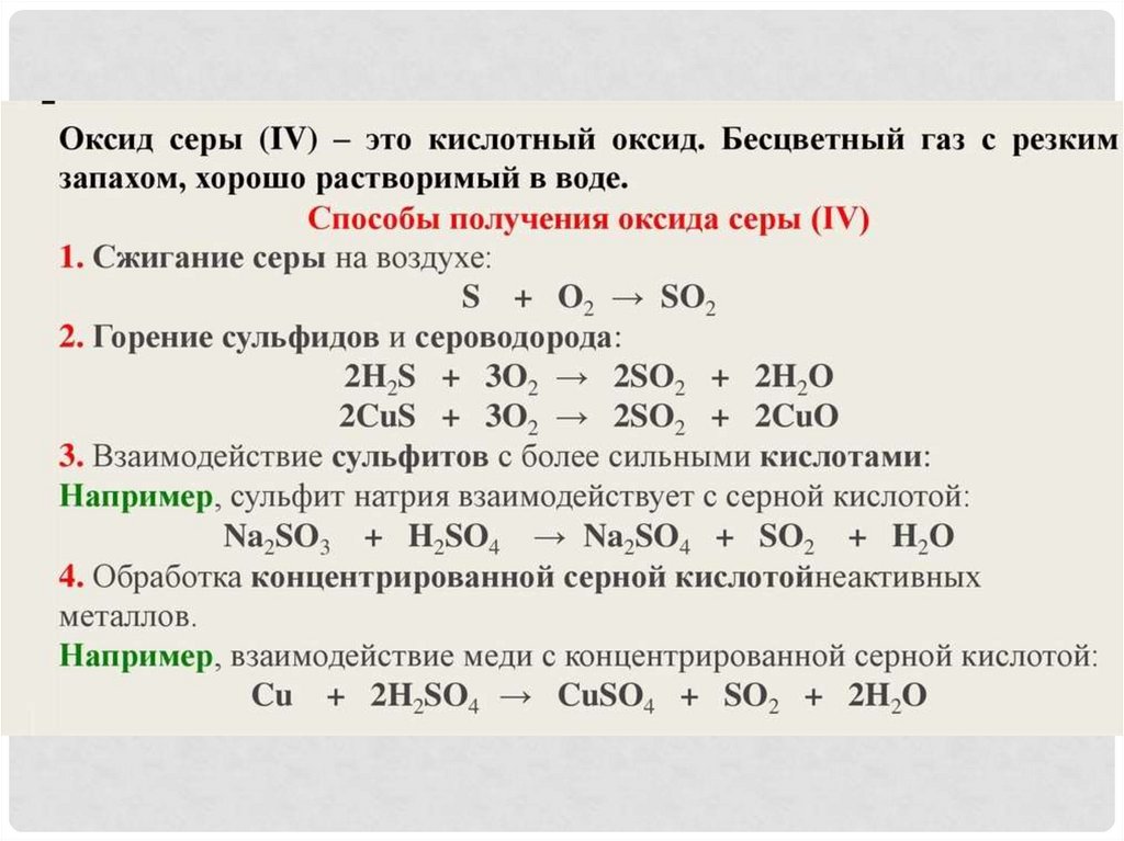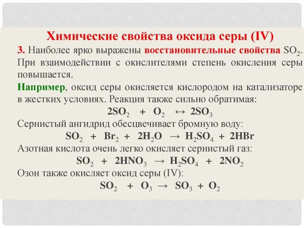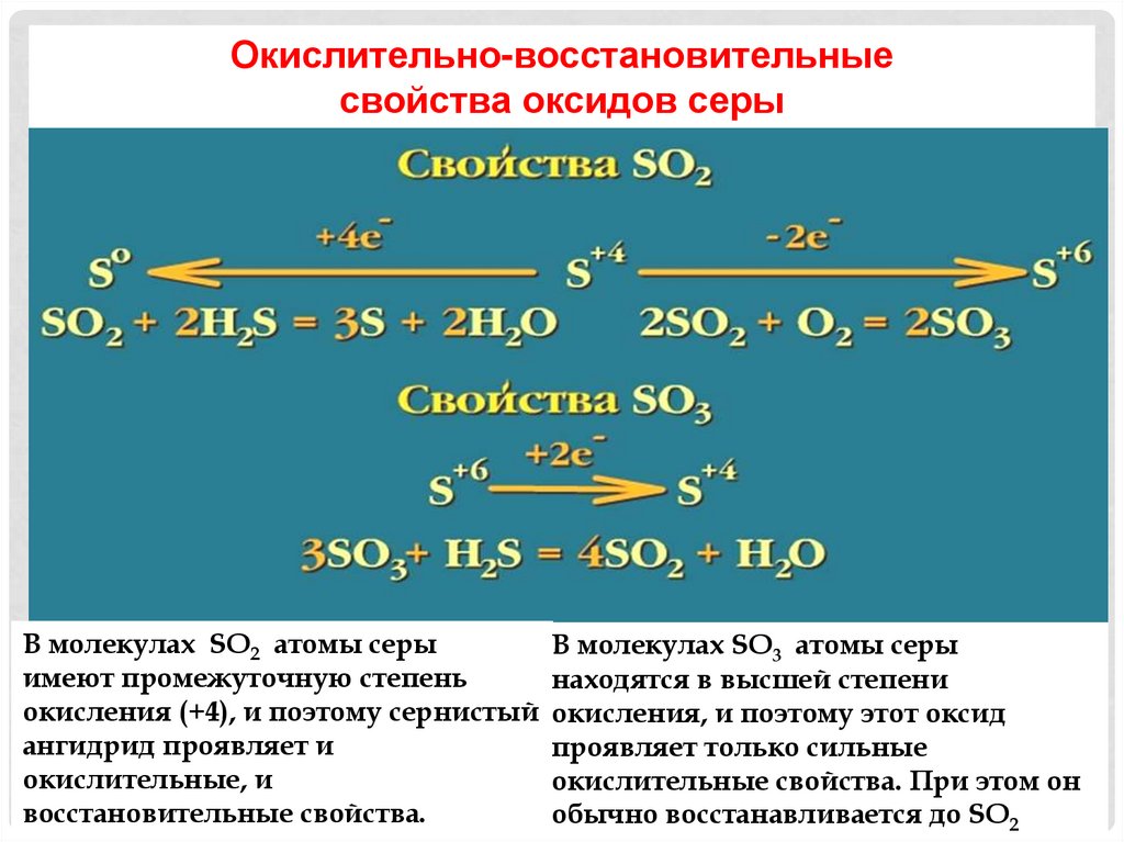 ХИМИЧЕСКИЕ СВОЙСТВАОКСИДОВ СЕРЫ