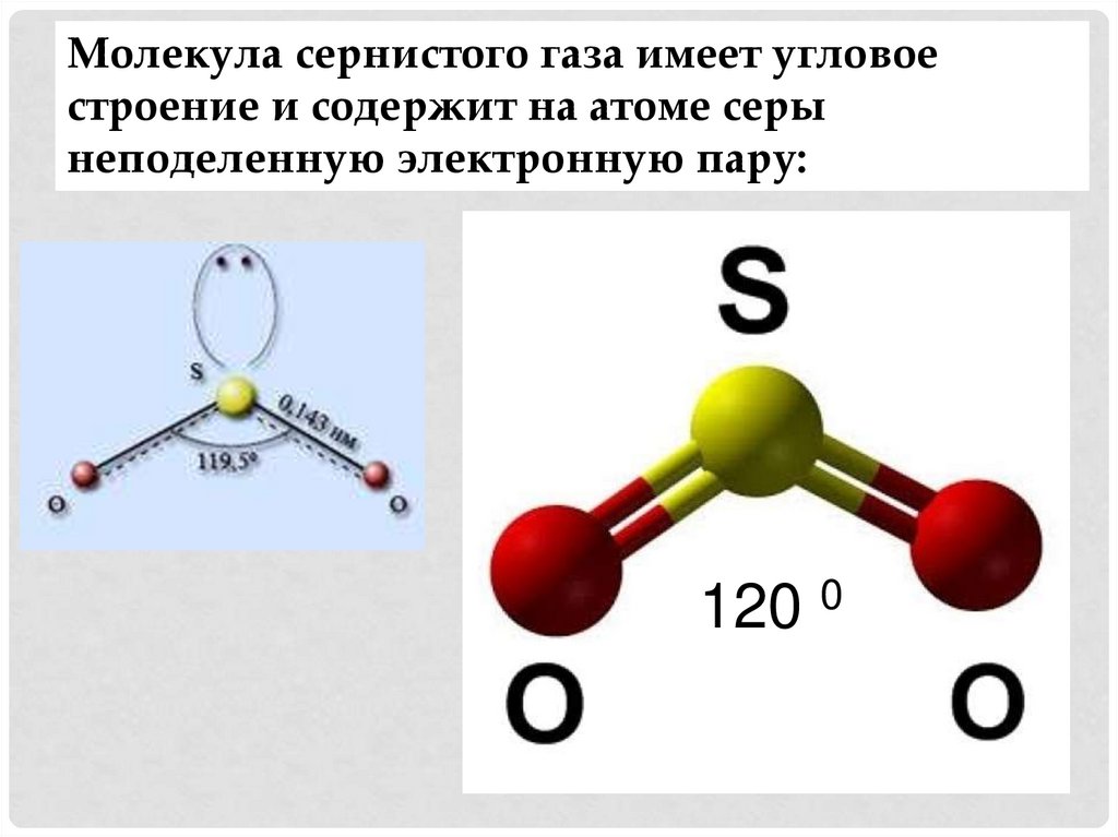 Молекула сернистого газа имеет угловоестроение и содержит на атоме серы