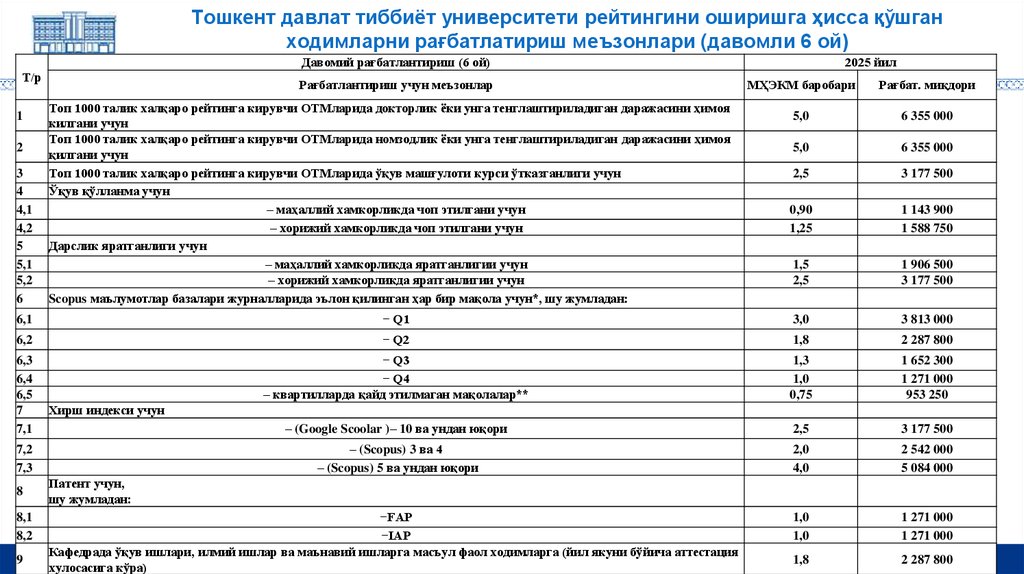 Тошкент давлат тиббиёт университети рейтингини оширишга ҳисса қўшган