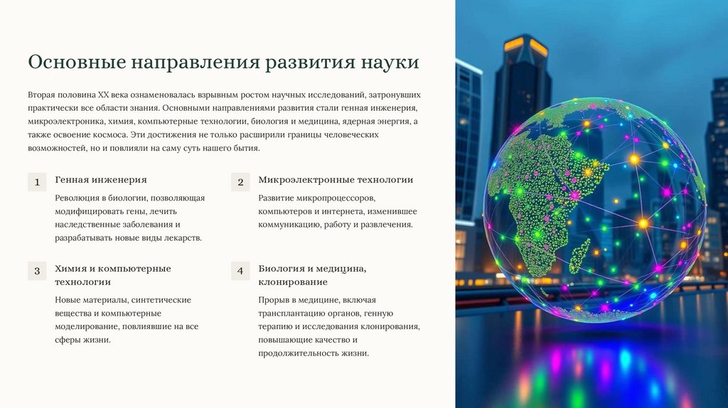 Основные направления развития наукиВторая половина XX века ознаменовалась взрывным ростом научных исследований, затронувших