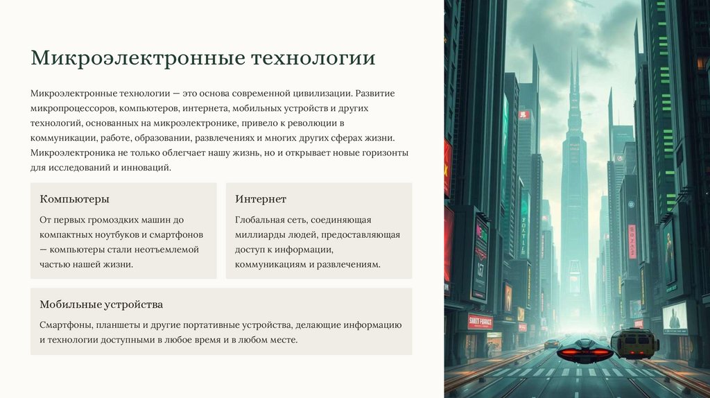 Микроэлектронные технологииМикроэлектронные технологии — это основа современной цивилизации. Развитие