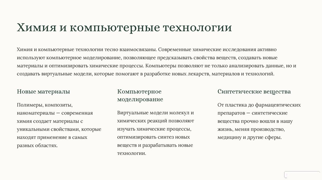 материалы и оптимизировать химические процессы. Компьютеры позволяют не только анализировать данные, но и