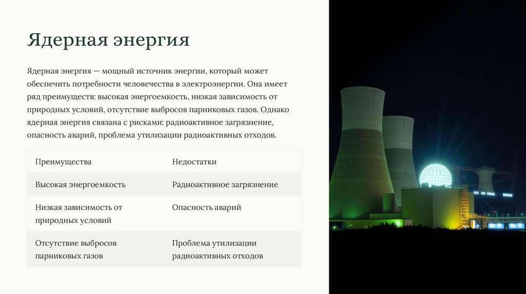 Ядерная энергияЯдерная энергия — мощный источник энергии, который может