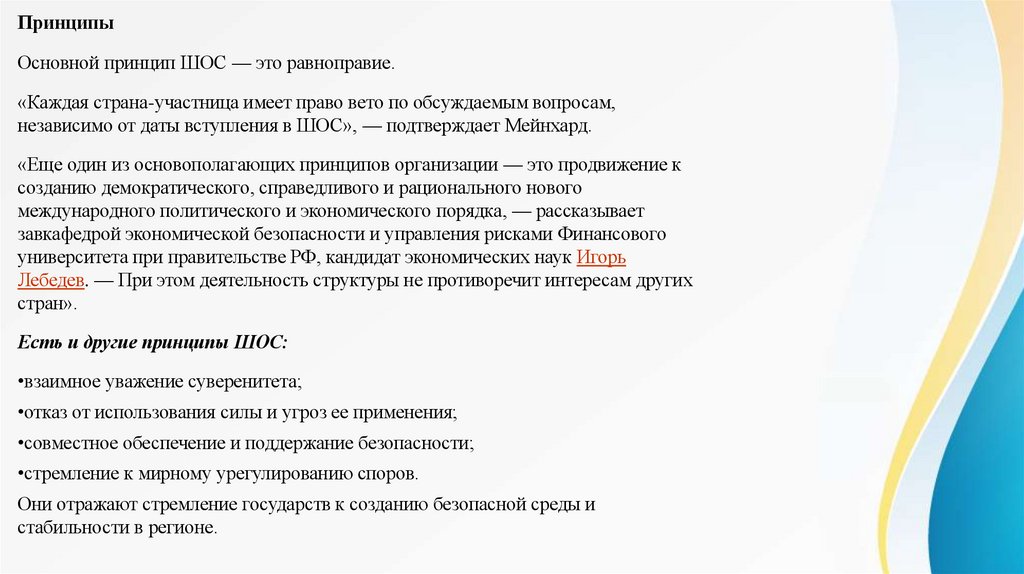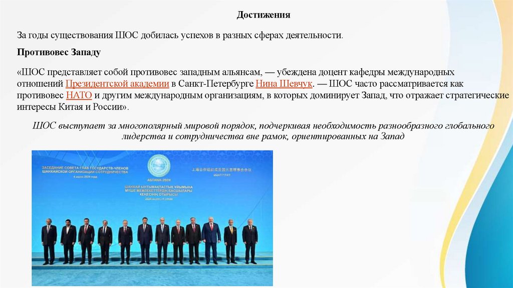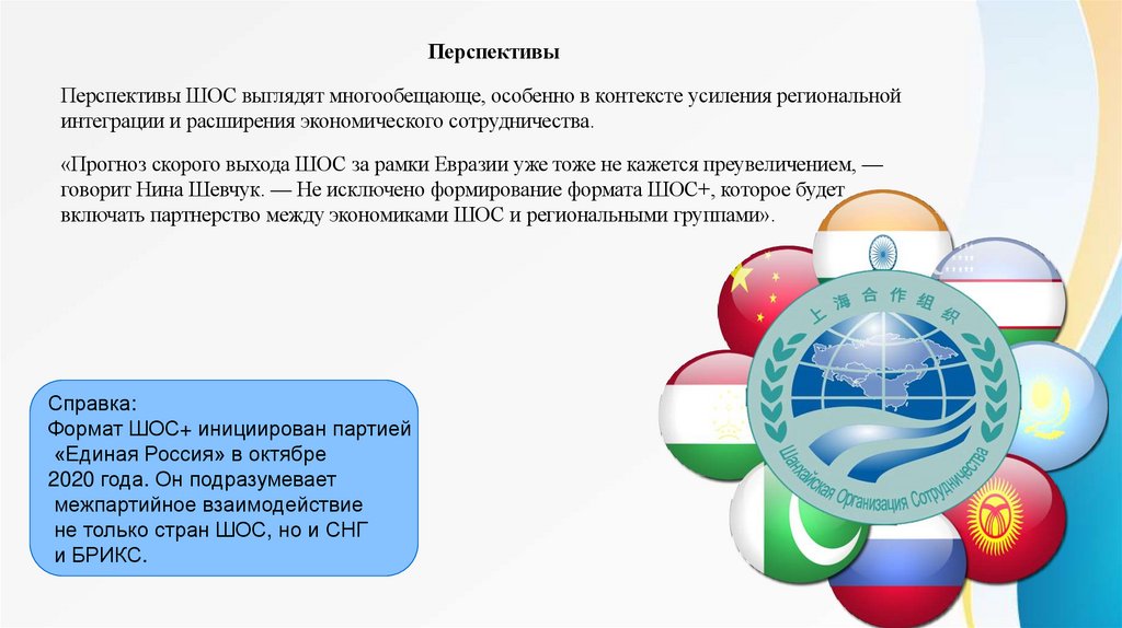 отношений Президентской академии в Санкт-Петербурге Нина Шевчук. — ШОС часто рассматривается как