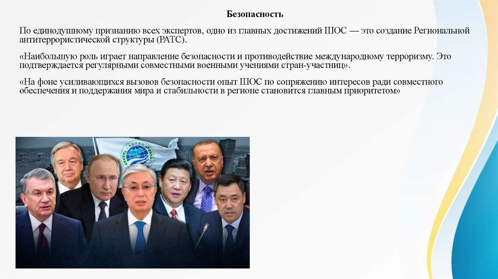 «Наибольшую роль играет направление безопасности и противодействие международному терроризму. Это