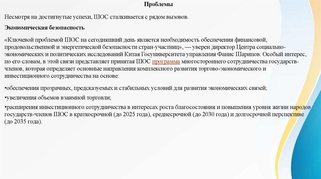 ПроблемыНесмотря на достигнутые успехи, ШОС сталкивается с рядом вызовов.