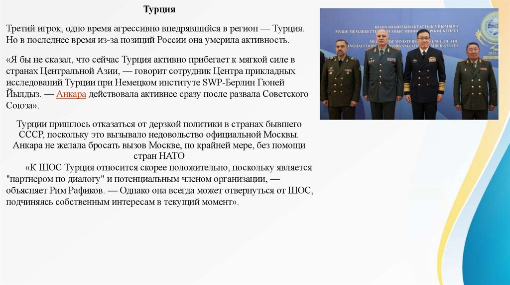 ТурцияТретий игрок, одно время агрессивно внедрявшийся в регион — Турция.