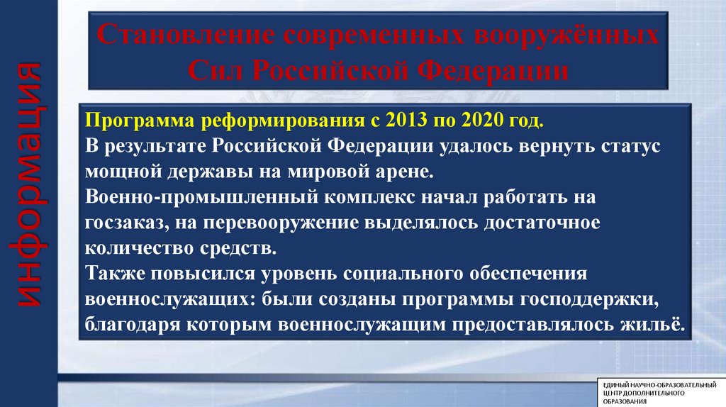 условий для мирного социально-экономического развития Российской Федерации и обеспечение ее военной