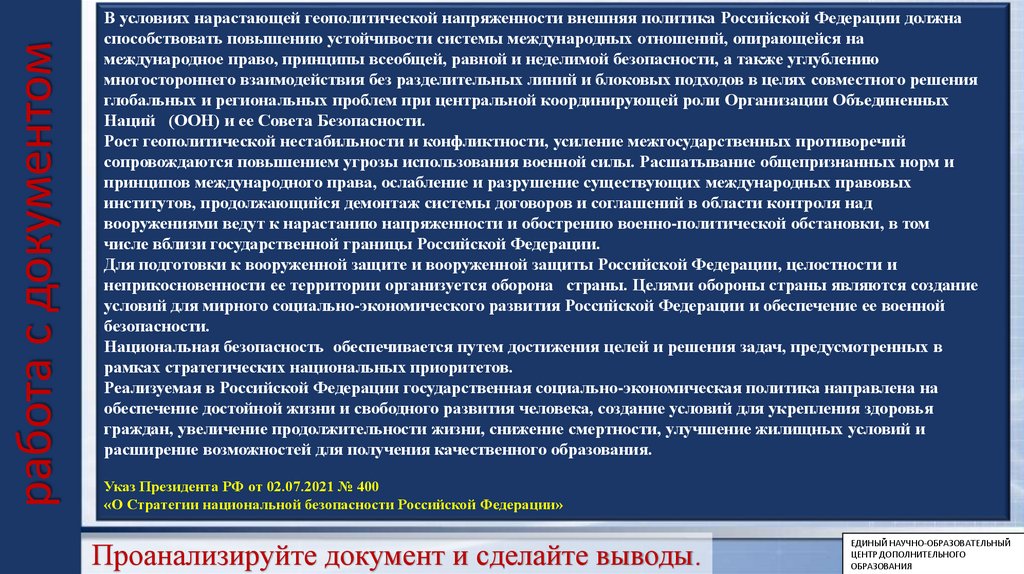 работа с документомВ условиях нарастающей геополитической напряженности внешняя политика Российской Федерации должна