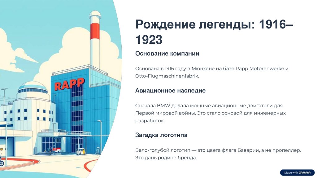 Основана в 1916 году в Мюнхене на базе Rapp Motorenwerke и