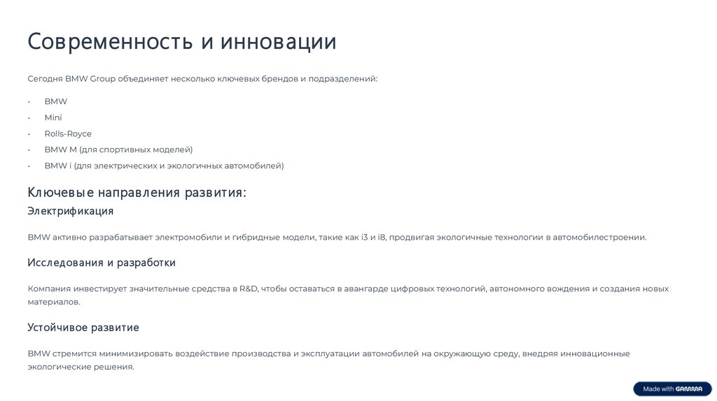 Сов ременность и инновацииСегодня BMW Group объединяет несколько ключевых брендов и подразделений: