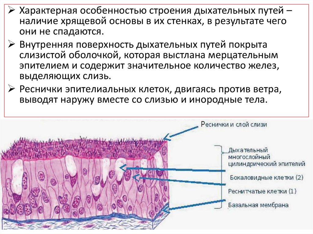 Характерная особенностью строения дыхательных путей –наличие хрящевой основы в их стенках, в результате чего
