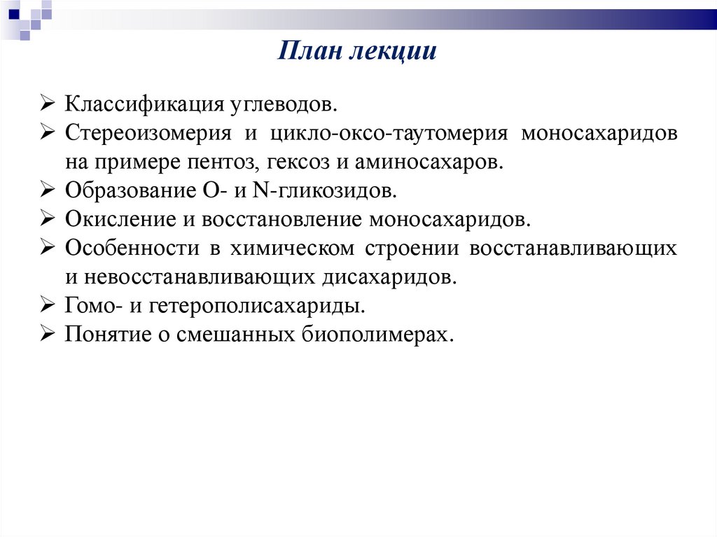 План лекцииКлассификация углеводов.