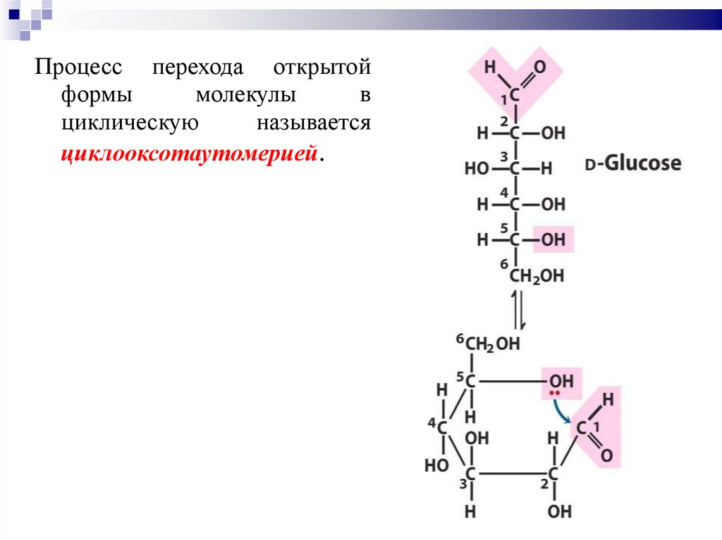 В циклической форме карбонильный (1-ый атом углерода уальдоз, и 2-ой у кетоз) становится хиральным центром, его